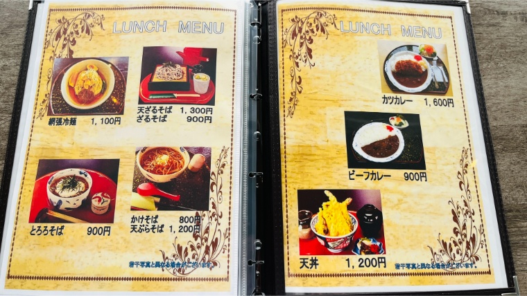 食事はそばやカレー、冷麺などしっかりしたメニューから、ケーキやコーヒーなどカフェメニューまで幅広くそろっていました。家族連れでも一人旅でも使いやすいラインナップで、ランチ利用にもカフェ休憩にもぴったりでした。