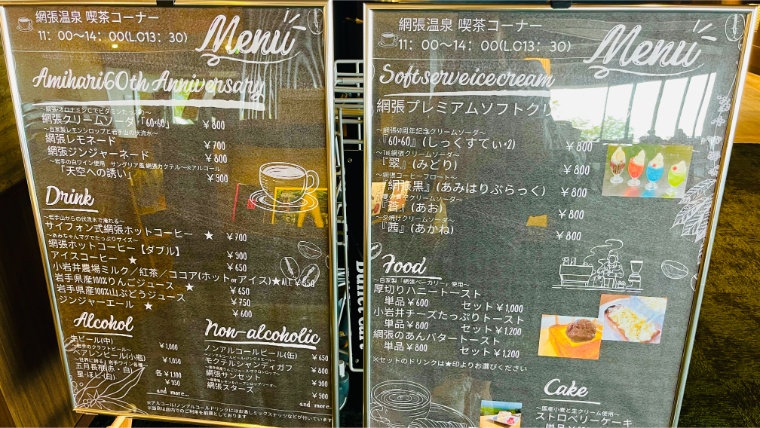 店内はリニューアルしたばかりでとてもきれい。大きな窓が印象的で、高級感のあるカフェのような雰囲気でした。外を眺められる席やテラス席もあり、温泉のあとの休憩にもぴったり。11:00〜14:00の時間帯だけ日帰り客も利用できます。