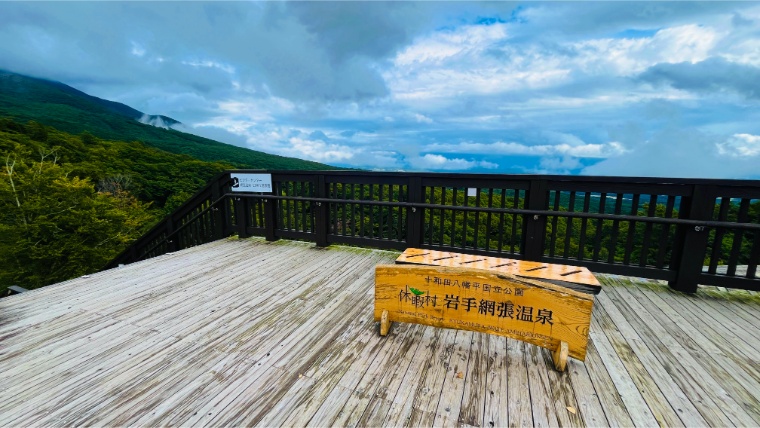 テラスからは岩手山をはじめ、雄大な自然を一望。山が近く、遠くには盛岡市街も見渡せます。天気のいい日は本当に絶景で、思わず写真を撮りたくなる景色。涼しい季節には温泉後のコーヒーをテラスで飲むのも最高です。