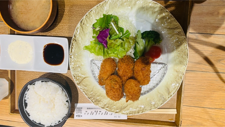 衣はサクッと、中はとろっと濃厚。三陸産の牡蠣を使ったカキフライは間違いないおいしさでした。