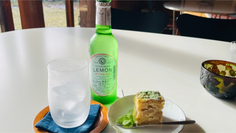 この日は娘と訪れたので、私はカフェオレ、娘はサイダーを注文しました。りんごジュースがおすすめのようでしたがど、残念ながら娘の気分じゃなかったらしく、ちょっと残念。